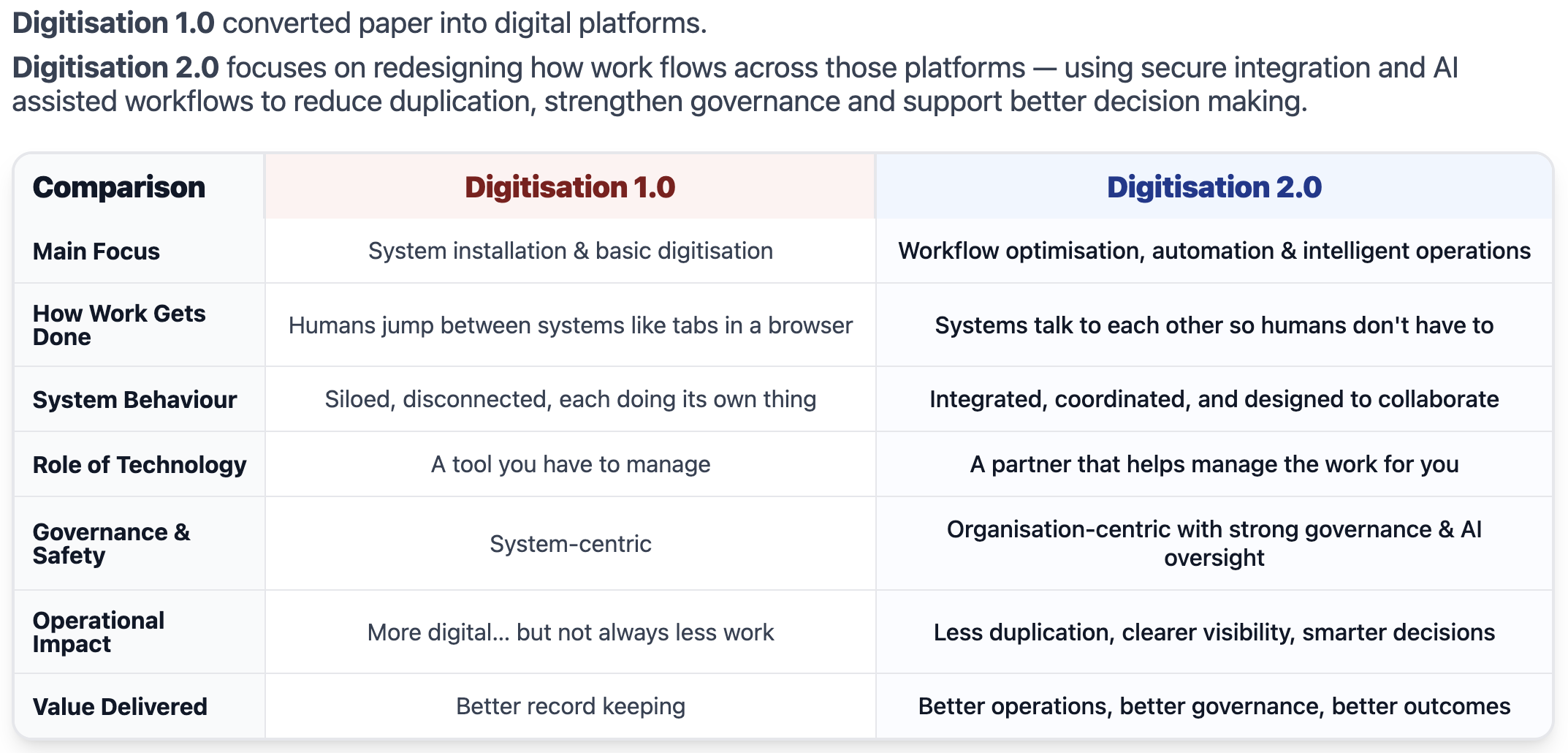 AI analyses information, generates recommendations and drafts structured outputs — while human experts remain responsible for review and approval before any action is taken. This ensures technology improves operational efficiency while maintaining appropriate governance, accountability and clinical oversight.